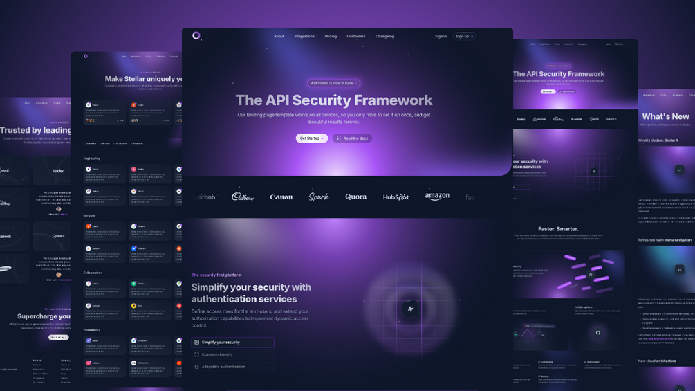 - Ready-to-use navigation (About, Integrations, Pricing, Customers, Changelog)
