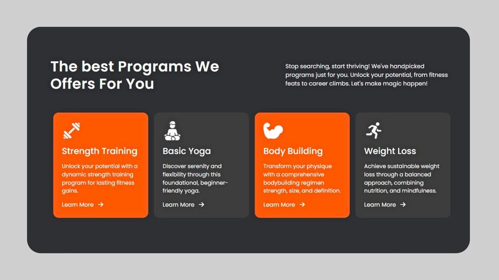 πŸ’ͺ Sculpted Aesthetics, Powered by Bootstrap: Marvel at the visually stunning presentation of our cutting-edge gym and fitness offerings. The sleek and modern aesthetic, powered by Bootstrap, complements the state-of-the-art facilities and classes showcased on our website.